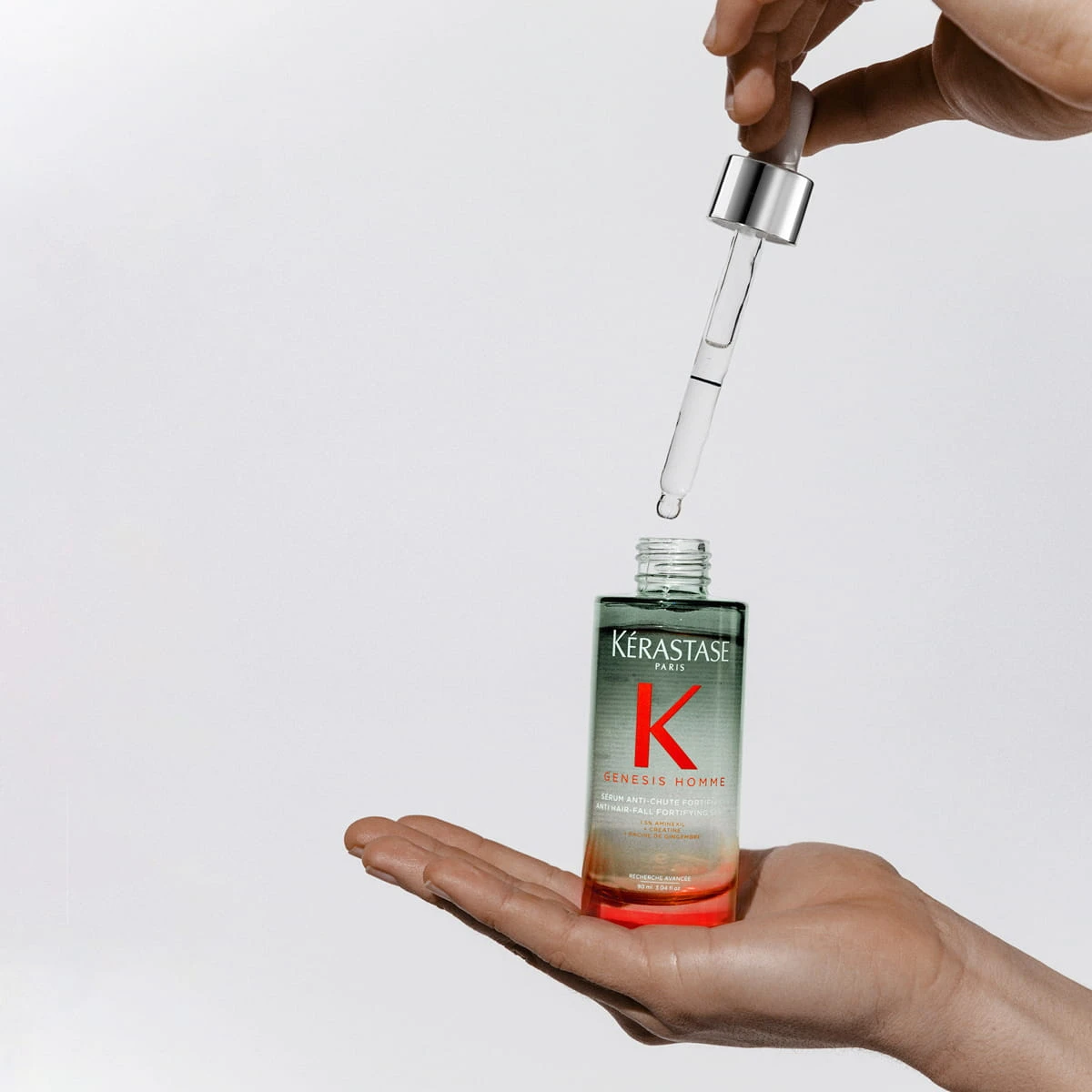 Kérastase Genesis Homme to linia stworzona specjalnie dla mężczyzn borykających się z problemem osłabionych, przerzedzających się włosów. Produkty tej serii łączą zaawansowaną technologię pielęgnacyjną z lekkimi, męskimi formułami, które nie obciążają włosów, a jednocześnie skutecznie wspierają ich wzmocnienie, pogrubienie i zahamowanie wypadania. Linia opiera się na synergii składników aktywnych, takich jak kreatyna, aminokwasy, kofeina czy ekstrakt z korzenia imbiru.