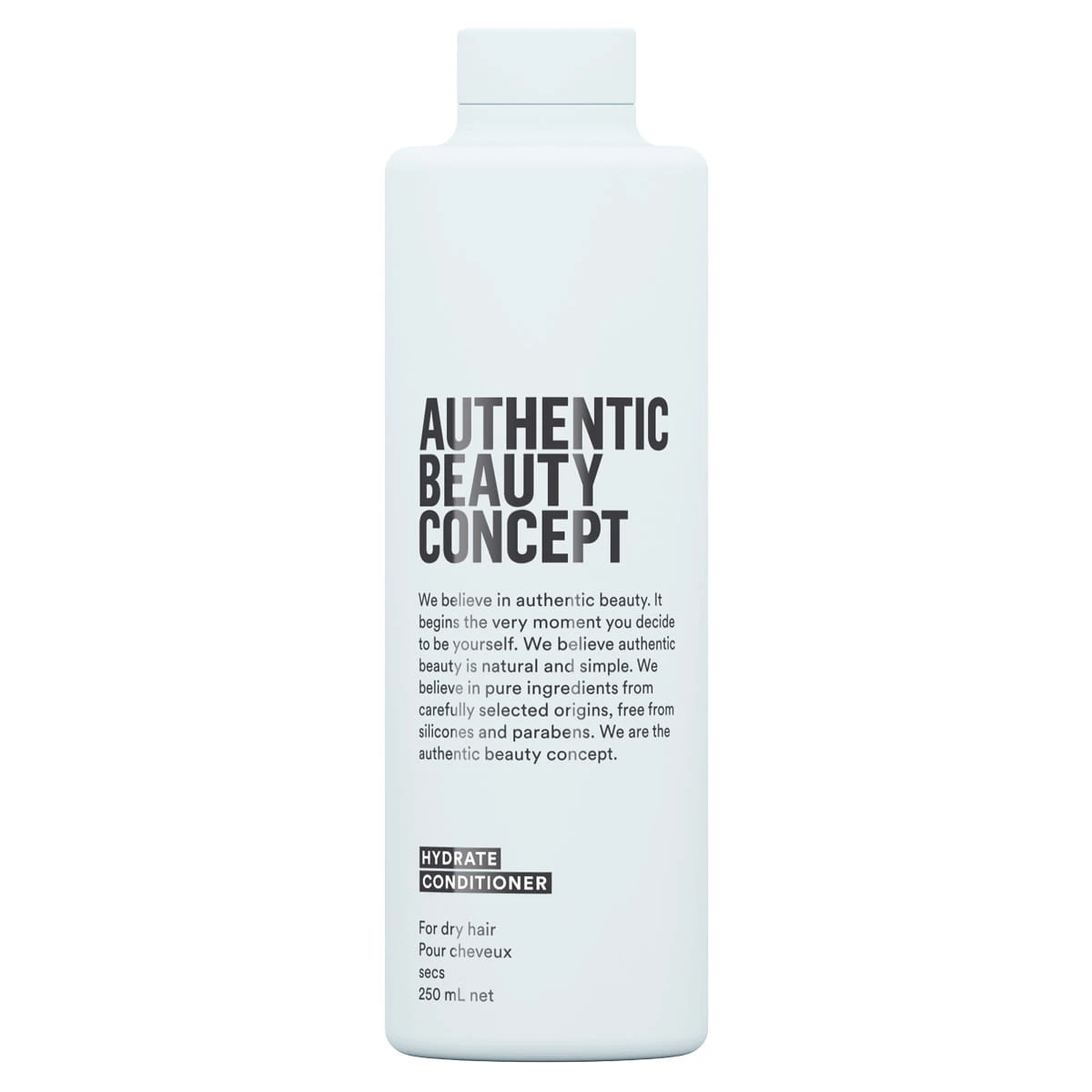 Authentic Beauty Concept Hydrate Conditioner to intensywna, a jednocześnie lekka odżywka przeznaczona do włosów normalnych, suchych oraz kręconych. Skutecznie nawilża pasma, przywracając im elastyczność, sprężystość i zdrowy blask bez efektu obciążenia.