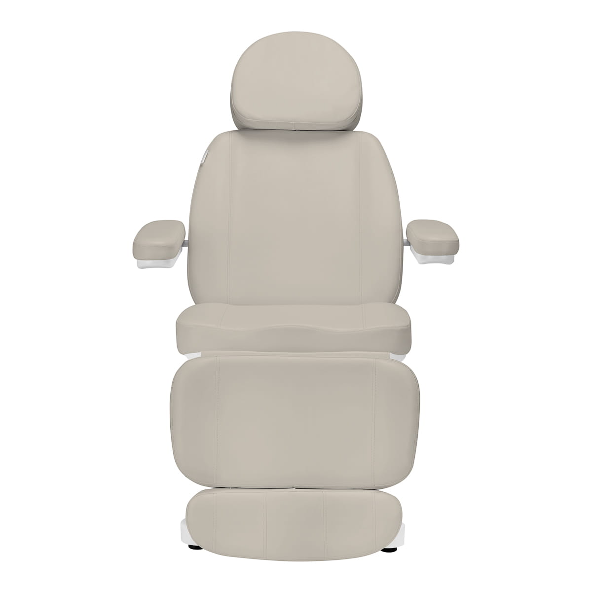 Fotel wypełniony jest wyprofilowaną pianką i pokryty przyjemną w dotyku skórą syntetyczną w odcieniach beżu. Użyty materiał sprawia, że sprzęt jest łatwy w czyszczeniu, a także odporny na wilgoć i wybrane środki dezynfekcji. Solidna podstawa wykonana z trwałego materiału w odcieniach bieli zapewnia stabilność w trakcie zabiegów. Odpowiednio wyprofilowane obszycia nadają fotelowi stylowy wygląd i sprawiają, że siedzisko jest ergonomiczne. Minimalistyczny, prosty design i klasyczna kolorystyka pozwalają mu wpasować się w każde wnętrze.