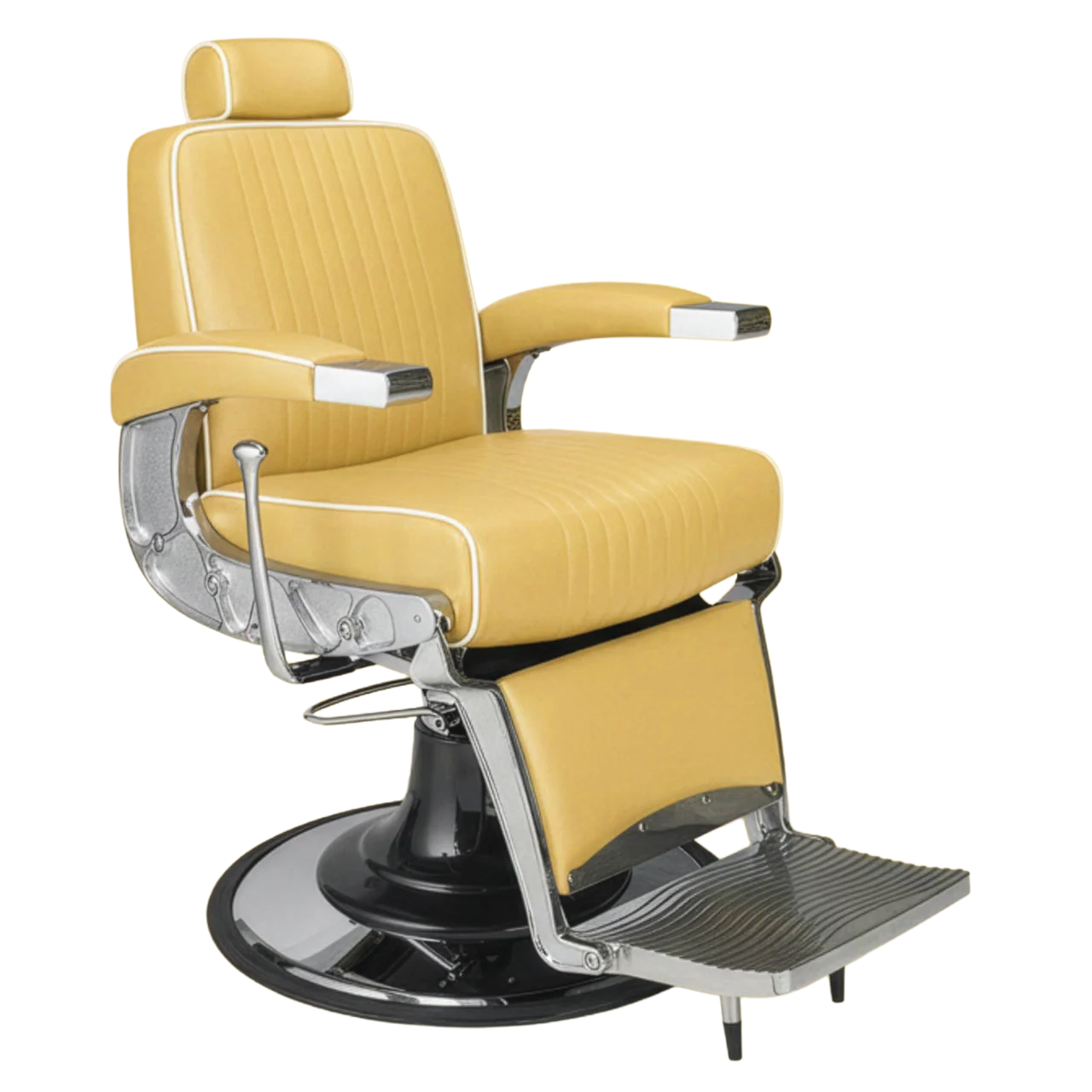 Stylowy i wygodny fotel barberski wykończony eleganckimi przeszyciami