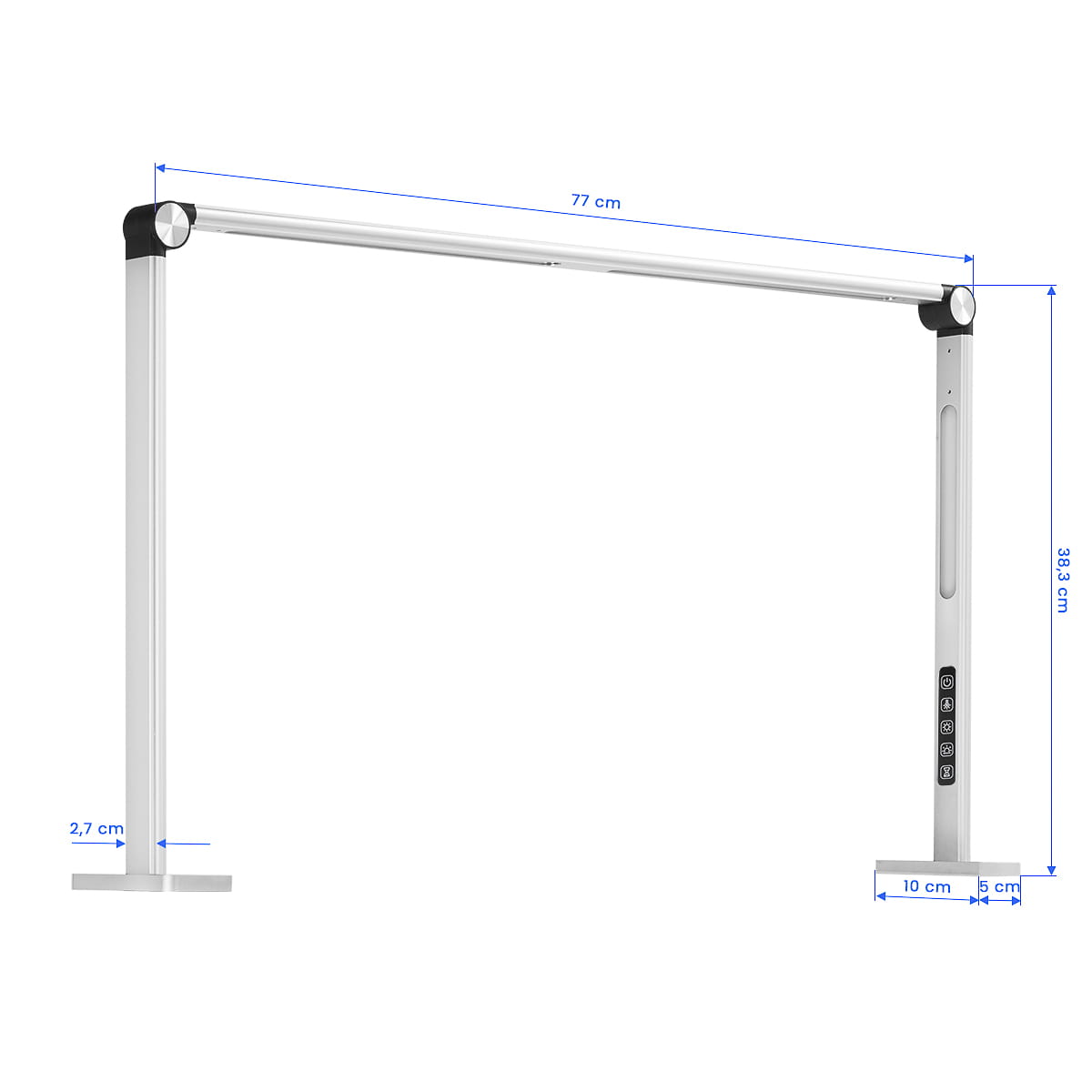 Dotykowy panel umożliwia pełną kontrolę nad ustawieniami oświetlenia – regulacji zarówno jego barwy (w 5 poziomach: od ciepłej 2800 K do chłodnej 5400 K), jak i natężenia światła (w 5 poziomach). Takie rozwiązanie pozwala idealnie dopasować oświetlenie do specyfiki wykonywanego zabiegu, zapewniając wygodę pracy i zmniejszając zmęczenie oczu, nawet podczas długotrwałego użytkowania. Mleczne, półprzezroczyste powierzchnie paneli skutecznie rozpraszają światło, eliminując efekt oślepiania. Dodatkowo użytkownik może wybrać sposób świecenia – włączyć boczne panele, górny panel lub wszystkie jednocześnie – co umożliwia precyzyjne dostosowanie oświetlenia.