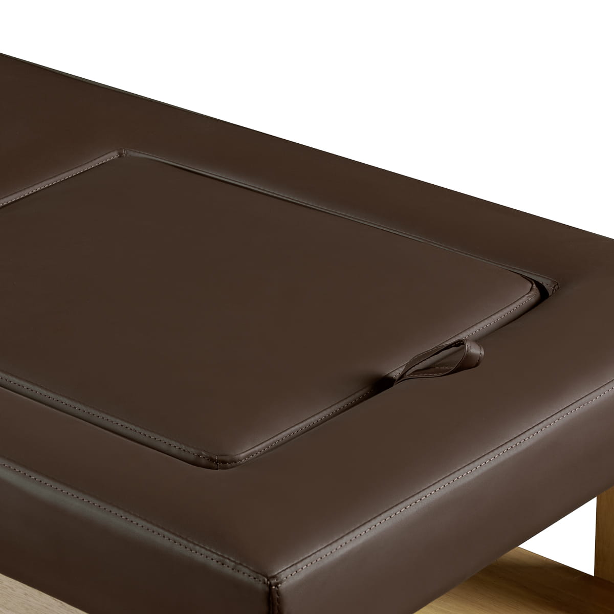 Elegancka leżanka ze zintegrowaną myjnią Gabbiano Head Spa Bali to innowacyjne rozwiązanie do wykonywania luksusowych zabiegów pielęgnacyjnych i relaksacyjnych. Doskonale sprawdza się przy japońskim Head SPA, hydroterapii, masażu wodnym, aromaterapii czy terapii parowej, zapewniając holistyczne doświadczenie pielęgnacyjne. Dodatkowo, sprawdza się również przy masażu ciała, oferując wszechstronne możliwości terapeutyczne i odprężające. Zaawansowane technologie i ergonomiczny design zapewniają nie tylko niezrównany komfort klientom, ale także ułatwiają pracę specjalistom w branży beauty & wellness. Połączenie naturalnej drewnianej konstrukcji z miękką tapicerką w kolorze brązu nadaje całości elegancji i gwarantuje komfort użytkowania.