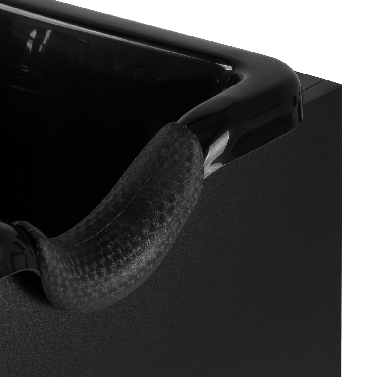 Głęboka misa w kolorze czerni została wykonana z wytrzymałego tworzywa sztucznego, co zapewnia jej odporność na uszkodzenia i łatwość utrzymania w czystości. Jej przemyślana konstrukcja skutecznie ogranicza rozchlapywanie wody i preparatów podczas mycia. Ergonomiczny kształt i wyprofilowany kołnierz z silikonową nakładką zapewniają klientowi wygodne ułożenie głowy. Praktyczne miejsce na słuchawkę natryskową sprzyja lepszej organizacji stanowiska, a korek z sitkiem ułatwia kontrolę przepływu wody i utrzymanie czystości oraz higieny.