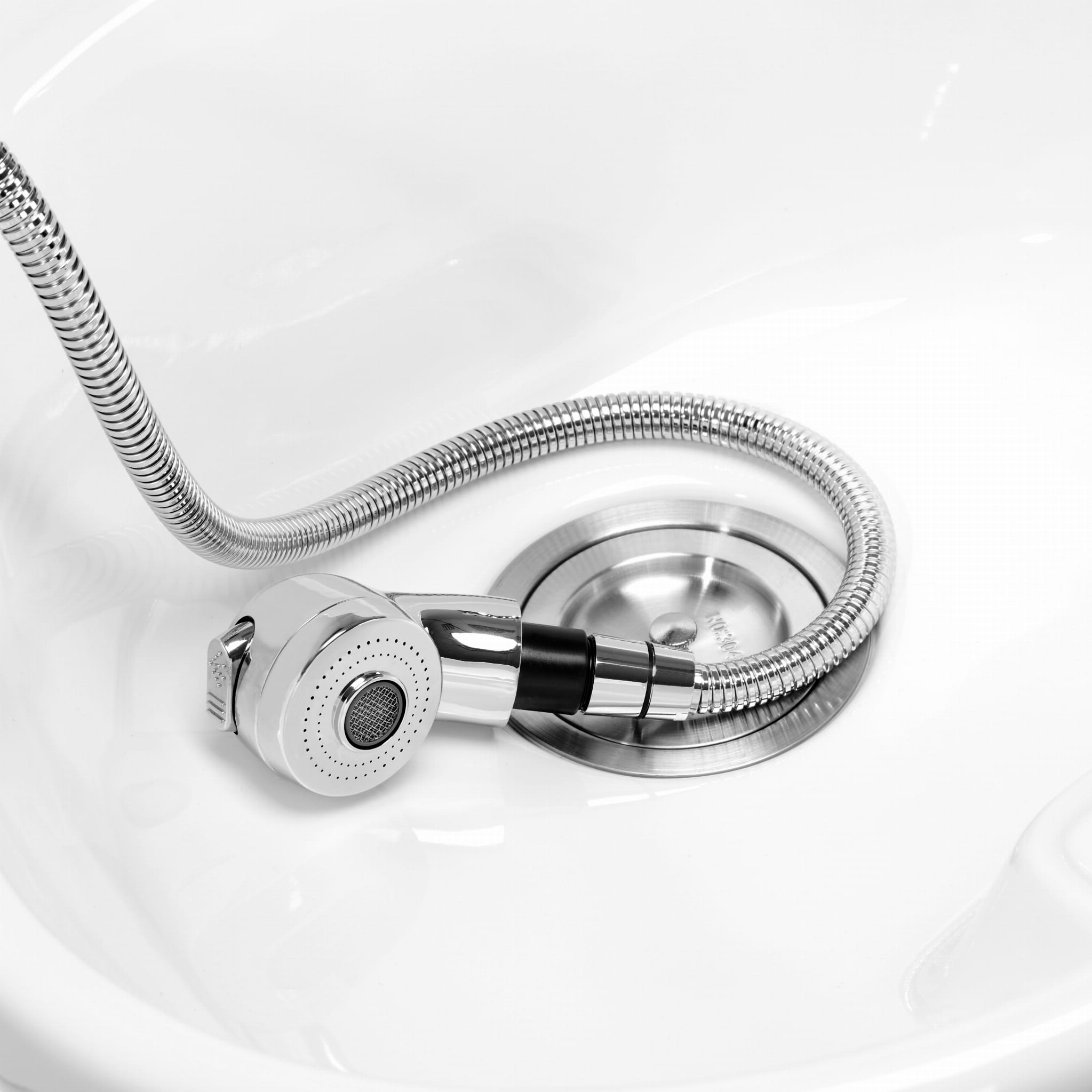 Myjnia jest wyposażona w baterię z mieszaczem, co zapewnia stały dostęp do ciepłej oraz zimnej wody. Pozwala to w łatwy sposób dopasować temperaturę do preferencji klienta. Słuchawka natryskowa z wężem o długości 120 cm oraz dedykowane miejsce na jej odłożenie ułatwiają pracę, a chromowany korek ze specjalnym sitkiem pozwala na kontrolę przepływu wody oraz utrzymanie wysokich standardów higieny w salonie. Przyłącze wody zostało umieszczone wewnątrz kolumny, co umożliwia sprawne ukrywanie wszelkich rur, przy czym łatwy w demontażu panel zapewnia bezproblemowy dostęp w razie potrzeby. Fotel wyprofilowano w taki sposób, by zapewniał wygodę podczas wykonywania różnorodnych zabiegów, a podnóżek zapewnia doskonałe podparcie dla nóg. Połączenie funkcjonalności i udogodnień sprawia, że praca w salonie fryzjerskim stanie się jeszcze bardziej komfortowa.