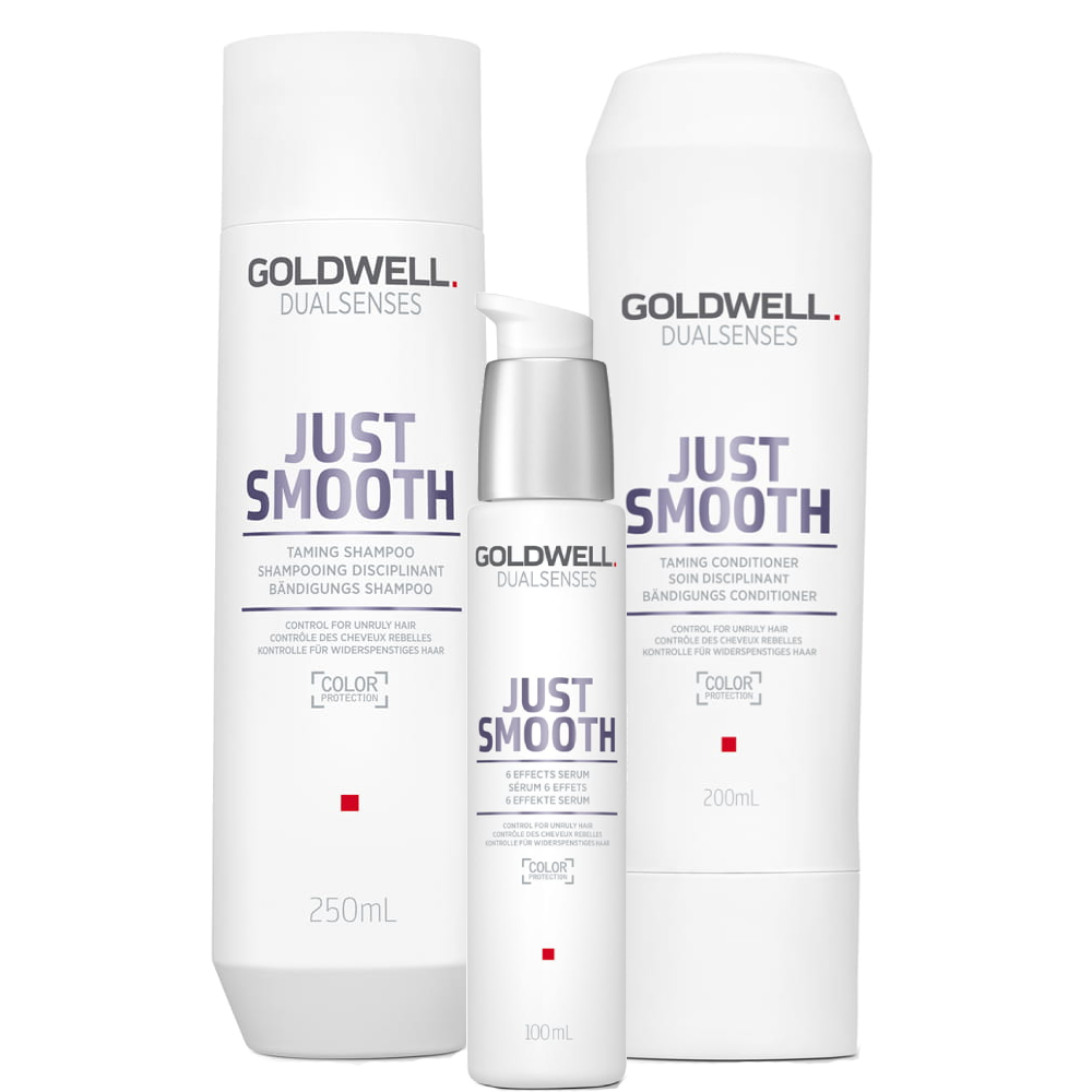 Goldwell Dualsenses Just Smooth - Zestaw do Włosów Niezdyscyplinowanych - Szampon 250ml + Odżywka 200ml + Serum 100ml