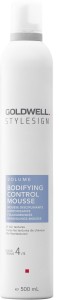 Goldwell StyleSign Volume Bodifying Control Mousse to mocno utrwalająca pianka, która powstała w odpowiedzi na problem wiecznie pozbawionych objętości włosów. Kosmetyk zapewnia trwałość fryzury nawet do 24 godzin, nadając jej przy tym perfekcyjną objętość. Zawarte w jego formule składniki gwarantują skuteczną ochronę termiczną, zabezpieczają przed utratą wilgoci, a także niwelują działanie szkodliwych czynników środowiska zewnętrznego. Zaawansowana formuła sprawia, że pianka świetnie sprawdzi się nawet w przypadku włosów trudnych do ułożenia.