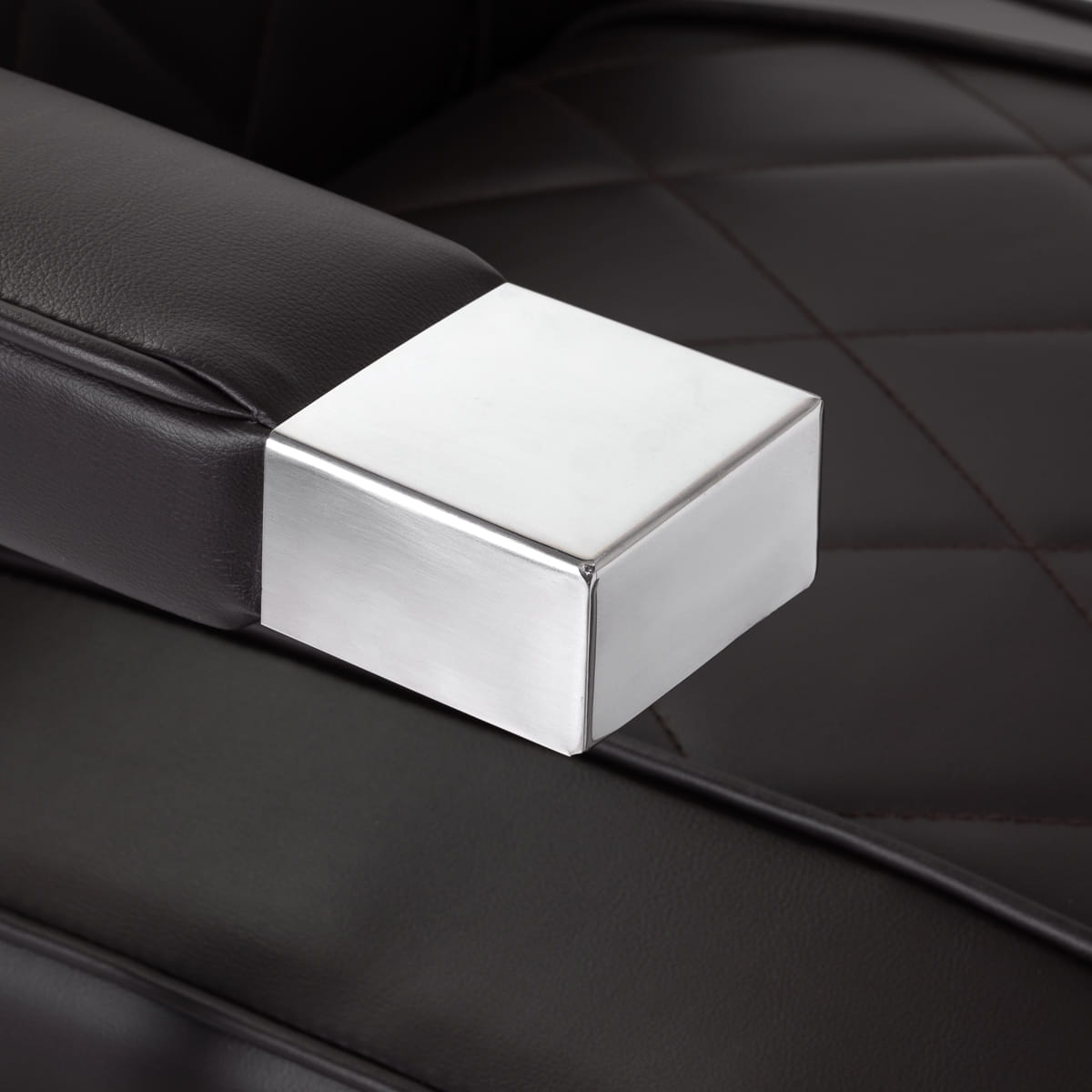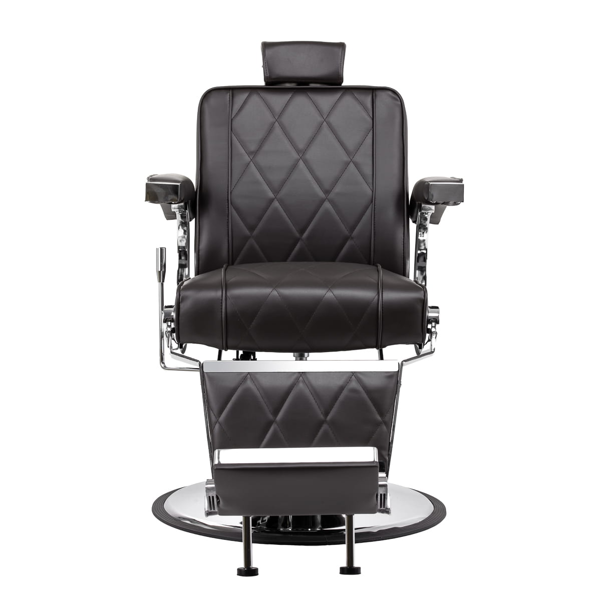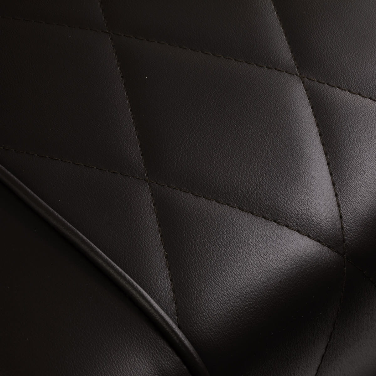 Solidna konstrukcja okrągłej podstawy zapewnia stabilność oraz wysoki komfort użytkowania. Wypełnienie siedziska z odpornej na odkształcenia pianki oraz obicie wykonane z przyjemnej w dotyku skóry syntetycznej o matowym wykończeniu zapewniają trwałość mebla oraz jego komfortowe użytkowanie przez długi czas. Stylowe przeszycia na tapicerce nadają fotelowi charakteru, przywodząc na myśl design motoryzacyjny, co podkreśla jego elegancki wygląd. Sprawiają również, że sprzęt jest odporny na wilgoć, wytrzymały oraz łatwy do czyszczenia. Pokrycie w odcieniach brązu nadaje mu wyjątkowego charakteru, a minimalistyczny styl pozwala mu wpasować się w wystrój każdego salonu barberskiego.