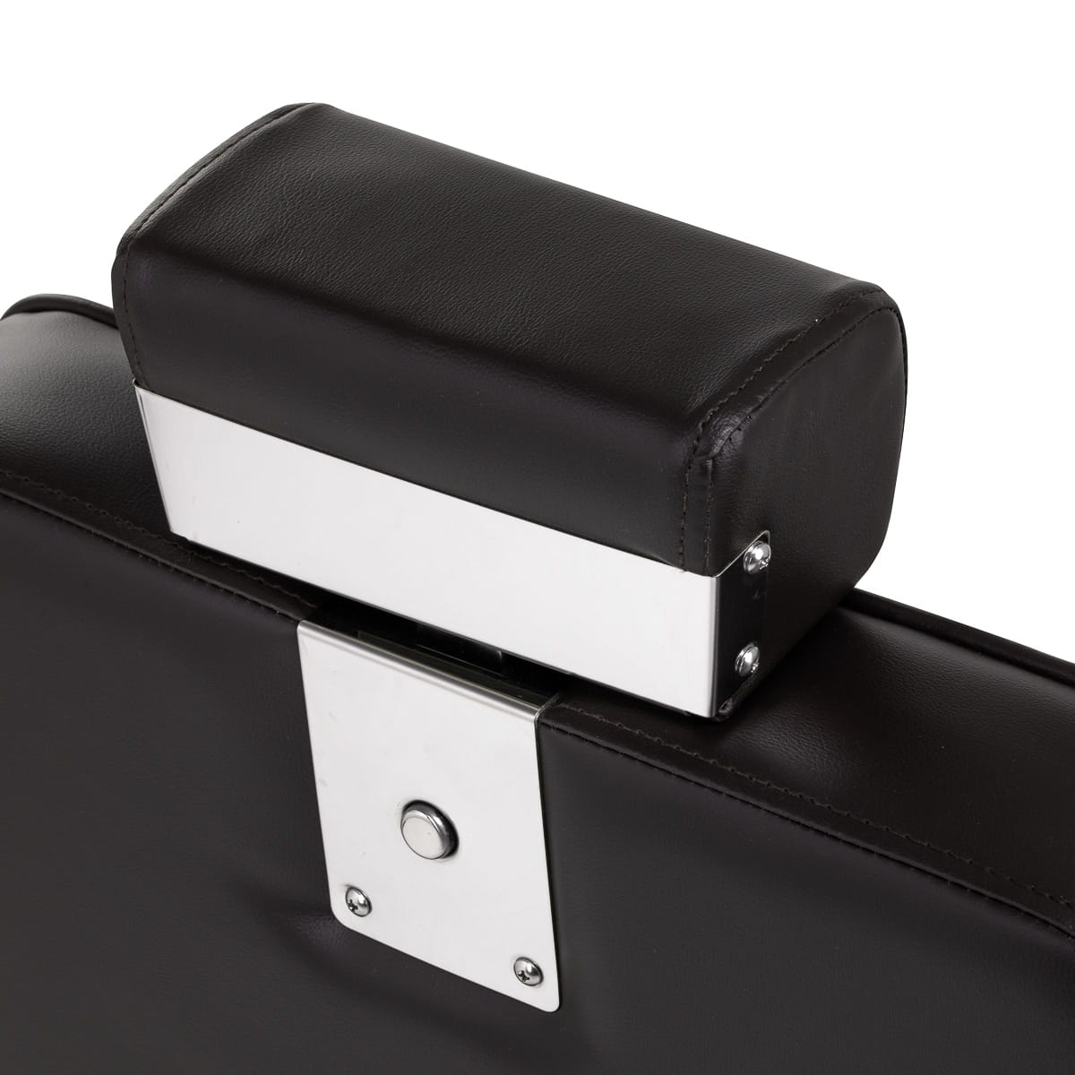 Wydajny podnośnik hydrauliczny umożliwia swobodną regulację wysokości siedziska w granicach 55-68 cm, nawet w momencie, gdy klient zajmie już miejsce w fotelu. Gwarantuje to ergonomiczną pracę i ułatwia dopasowanie poziomu siedziska do wzrostu zarówno klienta, jak i osoby wykonującej zabieg. Fotel posiada odchylane oparcie oraz regulowany podnóżek, dzięki czemu możliwe jest ułożenie klienta w dogodnej, półleżącej pozycji. Takie ustawienie gwarantuje lepszy dostęp podczas niektórych usług. Dodatkowo wysuwany o 20 cm zagłówek zapewnia doskonałe podparcie głowy.