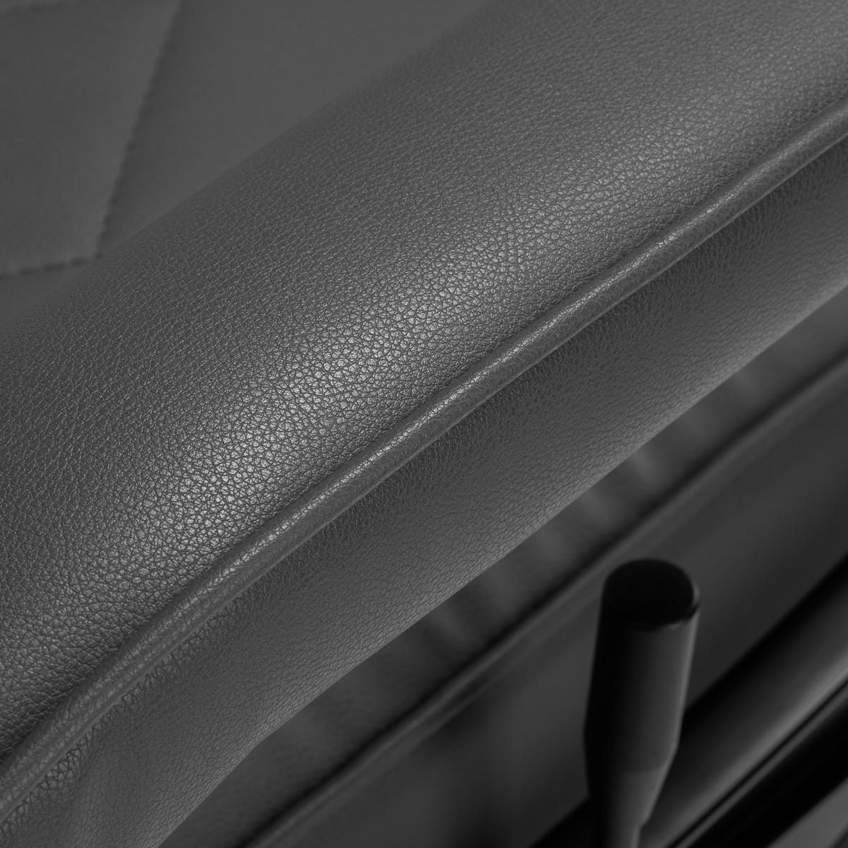 Solidna konstrukcja okrągłej podstawy zapewnia stabilność oraz wysoki komfort użytkowania. Wypełnienie siedziska z odpornej na odkształcenia pianki oraz obicie wykonane z przyjemnej w dotyku skóry syntetycznej o matowym wykończeniu zapewniają trwałość mebla oraz jego komfortowe użytkowanie przez długi czas. Stylowe przeszycia na tapicerce nadają fotelowi charakteru, przywodząc na myśl design motoryzacyjny, co podkreśla jego elegancki wygląd. Sprawiają również, że sprzęt jest odporny na wilgoć, wytrzymały oraz łatwy do czyszczenia. Pokrycie w odcieniach szarości nadaje mu wyjątkowego charakteru, a minimalistyczny styl pozwala mu wpasować się w wystrój każdego salonu barberskiego.