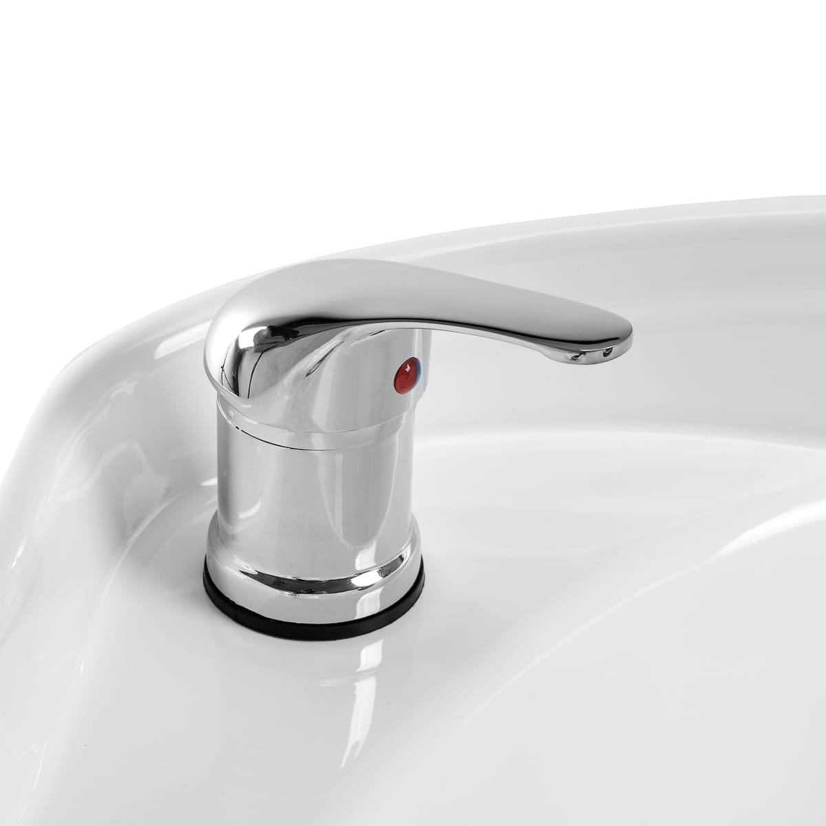 Odpowiednia głębokość białej, ceramicznej misy umywalki zapobiega nadmiernemu rozchlapywaniu wody oraz produktów używanych w trakcie zabiegu. Umożliwia tym samym komfortowe i efektywne wykonywanie szerokiej gamy usług. Ruchomość misy pozwala na łatwe dopasowanie kąta jej nachylenia do indywidualnych potrzeb. Zastosowany materiał sprawia, że umywalka jest wytrzymała, odporna na przebarwienia i zadrapania oraz bardzo łatwa do utrzymania w czystości. Odpowiednio wyprofilowany kołnierz zapewnia optymalne wsparcie oraz wygodę w trakcie mycia włosów, a komfortowa nakładka z tworzywa sztucznego w odcieniach czerni sprawia, że klient nie odczuje nieprzyjemności związanych z chłodem ceramicznej powierzchni.