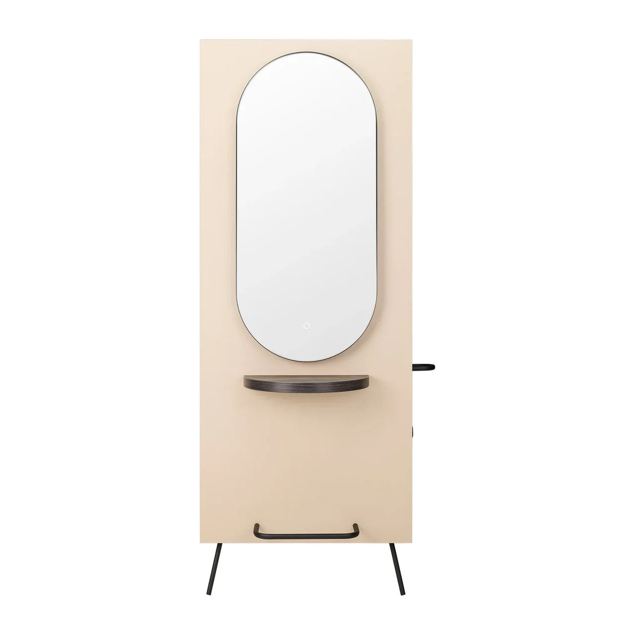 Duża konsola fryzjerska na metalowych nóżkach łącząca styl skandynawski ze stylem art deco
