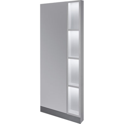 Front półek lakierowany na wysoki połysk - cokół w kolorze srebrnym