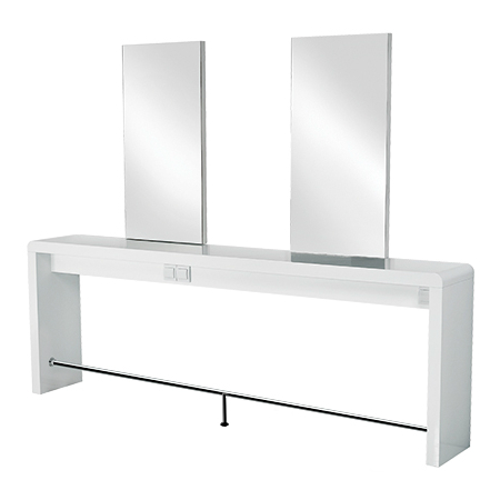 Stylowa i elegancka, podwójna konsoleta fryzjerska, obok której nie można przejść obojętnie