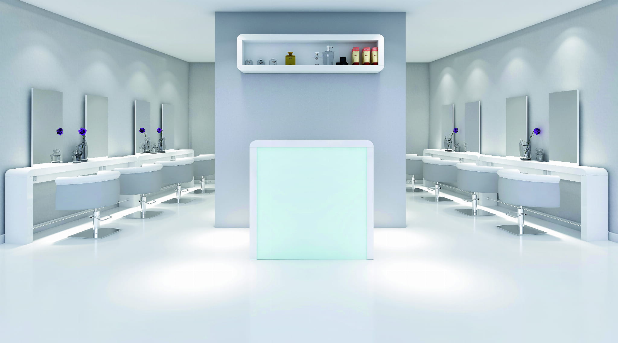 Stylowa i elegancka, podwójna konsoleta fryzjerska, obok której nie można przejść obojętnie