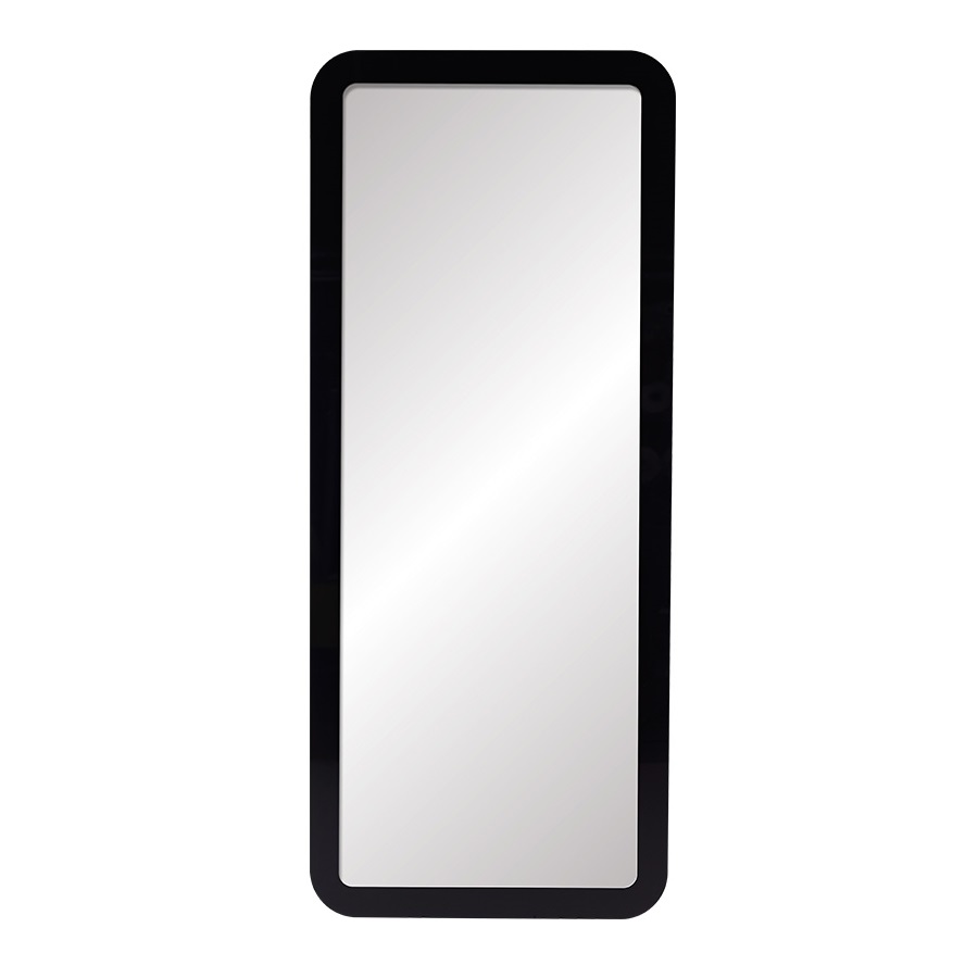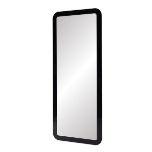 Klasyczna konsoleta fryzjerska z wysokim lustrem i stylową ramą z eleganckiego, czarnego pleksi