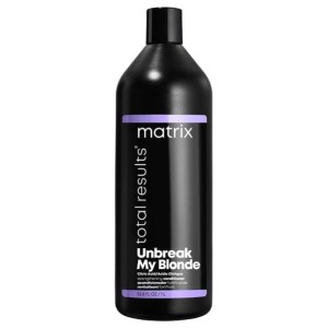 Odżywka Matrix Total Results Unbreak My Blonde to drugi krok codziennej pielęgnacji włosów poddanych zabiegowi rozjaśniania. Kosmetyk odczuwalnie nawilży pasma i sprawi, że będą one mocniejsze, błyszczące i bardziej miękkie w dotyku. Idealnie sprawdzi się w przypadku każdego rodzaju rozjaśnianych pasm.