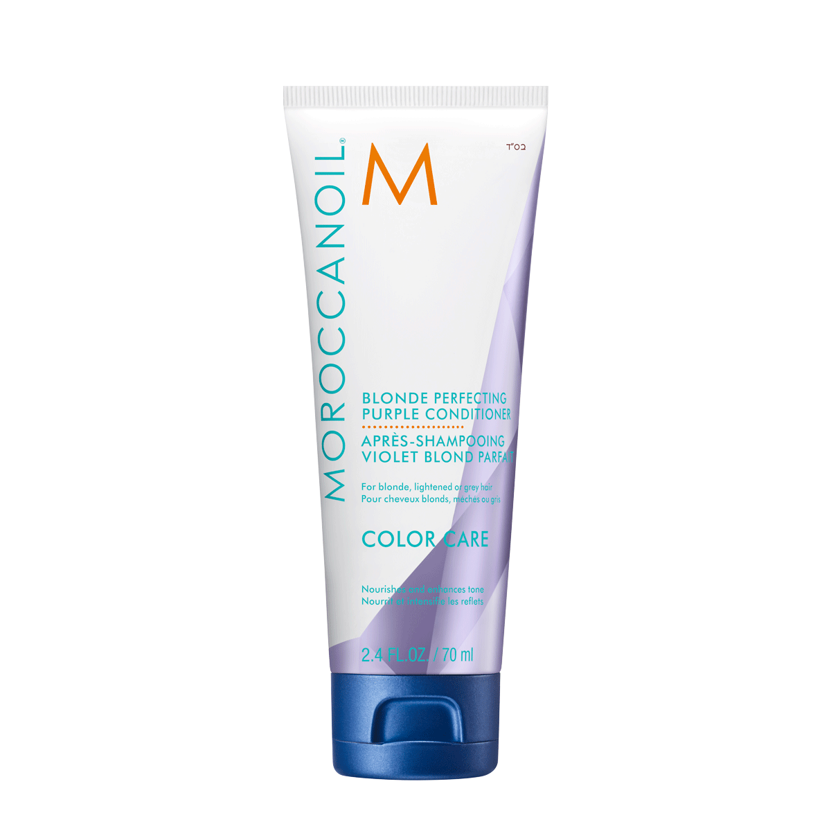 Moroccanoil Blonde Perfecting Purple Conditioner to odżywka opracowana z myślą o neutralizacji niepożądanych ciepłych tonów. Fioletowe pigmenty pomagają korygować odcień, wzmacniają głębię i wielowymiarowość koloru oraz przywracają naturalny połysk. Lekka, odżywcza formuła jednocześnie zapobiega żółtym i pomarańczowym refleksom oraz ożywia matowe blond pasma.