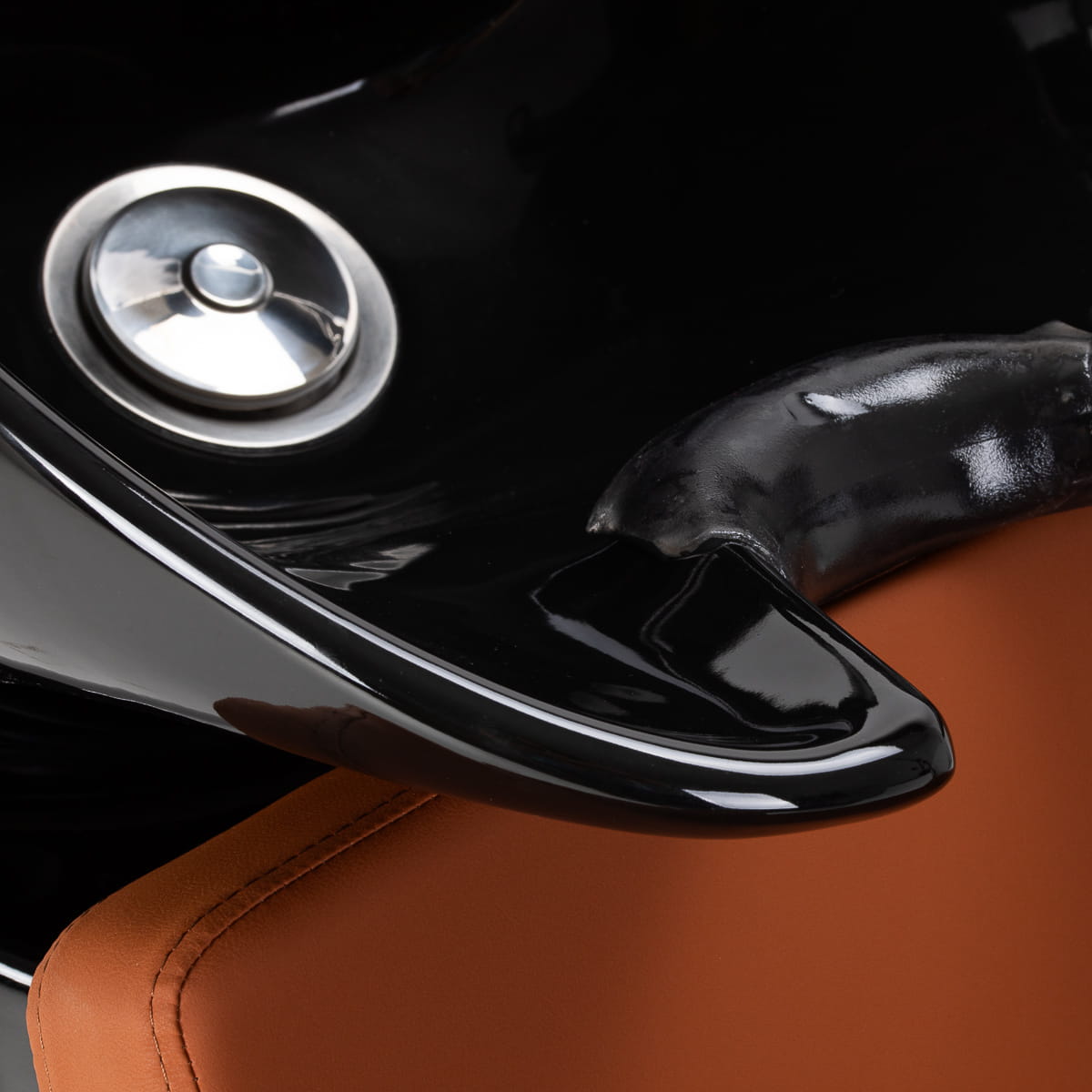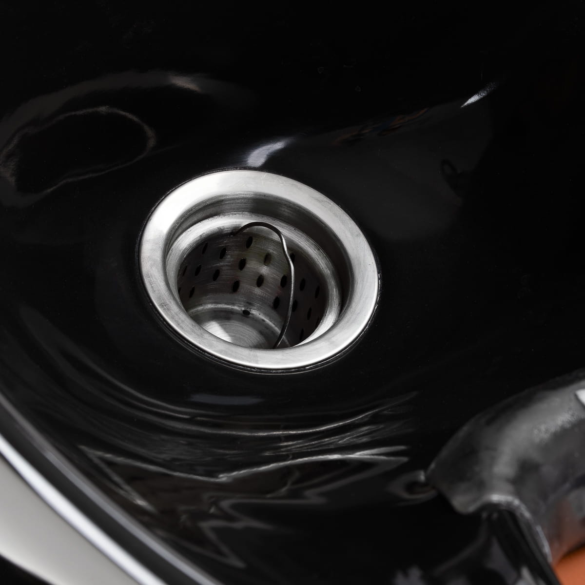 Głęboka ceramiczna misa w odcieniach czerni minimalizuje rozchlapywanie wody i kosmetyków podczas zabiegów. Regulowany kąt nachylenia misy umożliwia precyzyjne dopasowanie jej położenia do potrzeb klienta. Wykonana z trwałego materiału, jest odporna na przebarwienia, zarysowania i działanie środków chemicznych, a gładka powierzchnia ułatwia utrzymanie czystości. Ergonomicznie wyprofilowany kołnierz zapewnia wygodne podparcie głowy, a czarna nakładka z tworzywa sztucznego eliminuje uczucie chłodu przy kontakcie z ceramiką.