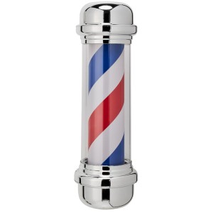 Obrotowy i podświetlany słupek przykuje uwagę każdego przechodnia, jasno sugerując, że w danym miejscu znajduje się salon w stylu BarberShop