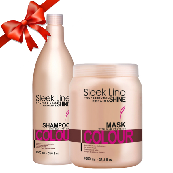 Stapiz Sleek Line Colour - Zestaw do Włosów Farbowanych - Szampon z Pompką 1L + Maska 1L