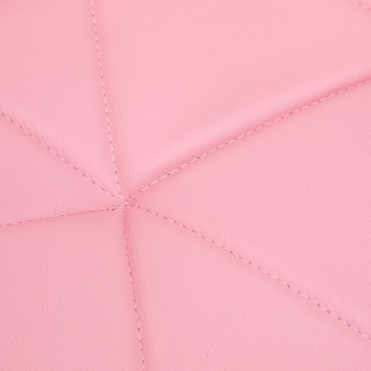 Pięcioramienna podstawa w odcieniach chromu wyposażona jest w gumowane kółka, które zapewniają znaczną mobilność, umożliwiając swobodne przemieszczanie mebla po gabinecie. Siedzisko taboretu zostało obite przyjemną w dotyku imitacją skóry w eleganckim odcieniu różu. Zastosowany materiał gwarantuje trwałość, odporność na wilgoć oraz łatwość w utrzymaniu czystości. Całość dopełniają stylowe przeszycia, które podkreślają nowoczesny design.